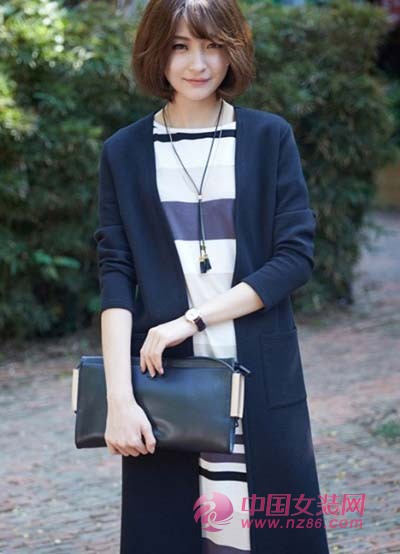 条纹单品真的是受万众宠爱,一件条纹连衣裙,粗细不等的条纹显得更有层次感哦!随性的穿上一件藏青色针织开衫,及膝的长度给人一种自然洒脱的利索。在春天如此美好的景色下,穿上这样的服饰,让你美不胜收。