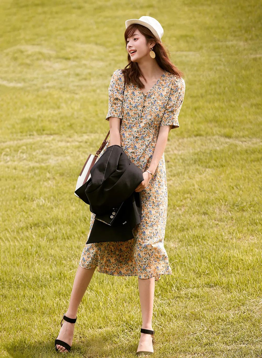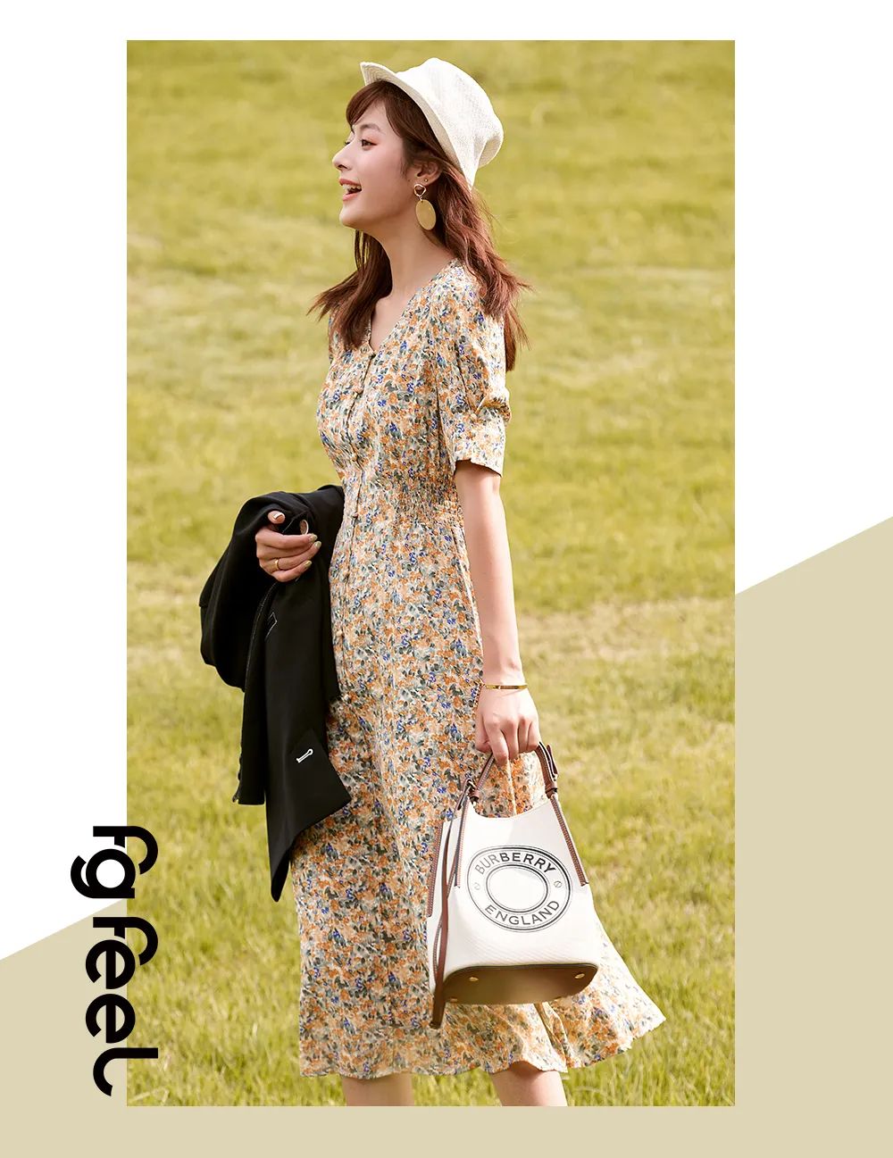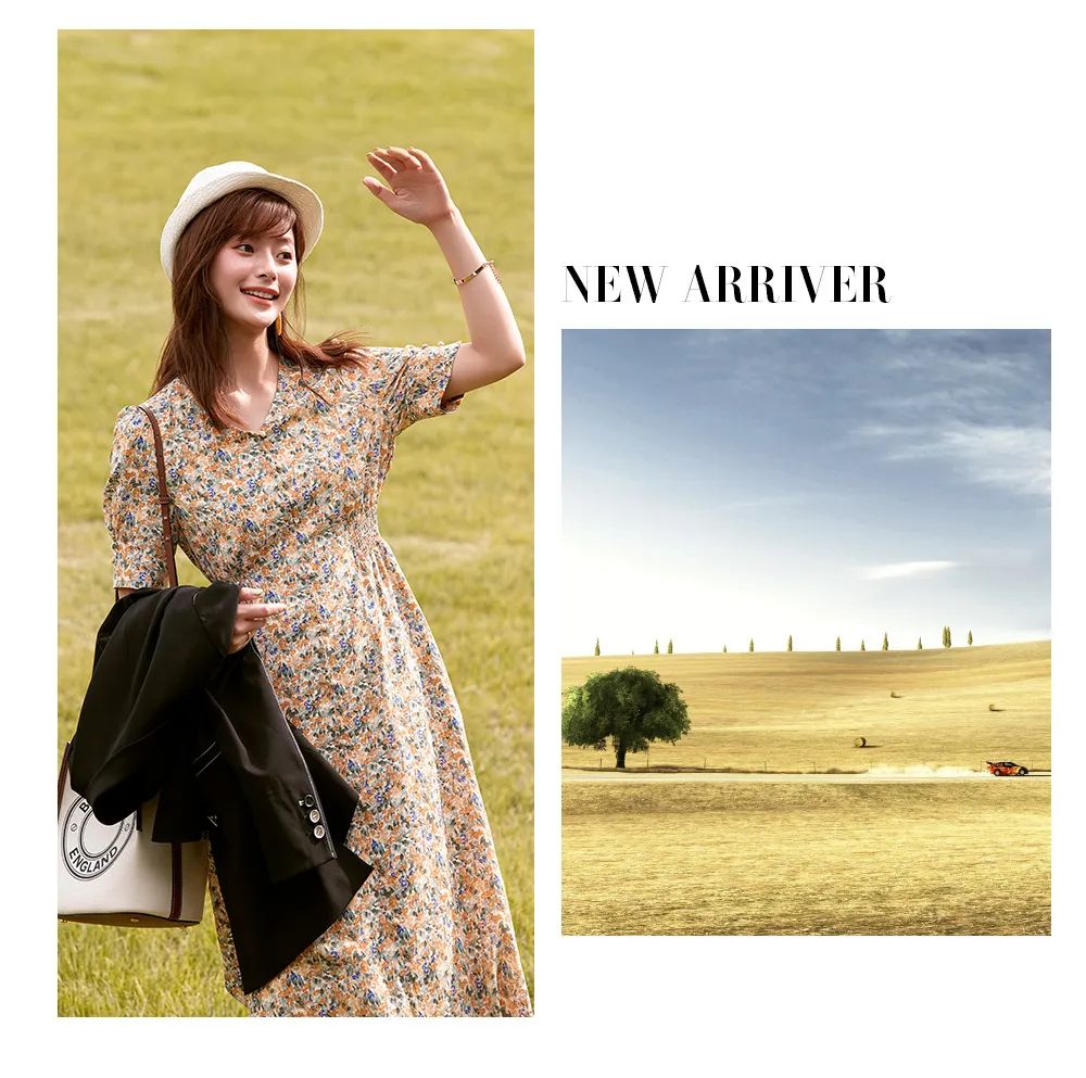 高品复古收腰茶歇连衣裙