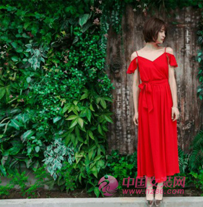 细肩带长裙设计,兼具风情与纯真,有种不自知的美与诱惑感。浅浅V形与荷叶边半袖流露出一种少女的纯洁与惊艳。