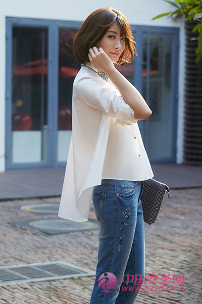 夏天是浅色系的王国,所在选择浅蓝色牛仔裤不会出错,如果你想要搭配上身宽松的雪纺衬衫的话,一定得来条小脚裤型才合适,飘逸轻柔的雪纺与硬朗有型的牛仔同屏出现,这种恰到好处的混搭别具一格,你不想要试试吗?