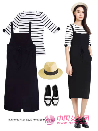 背带裙的帅气中性,夹杂着微微的甜美可爱,向你袭来。搭配条纹小衫,带上沙滩帽,咱们踏春去!
