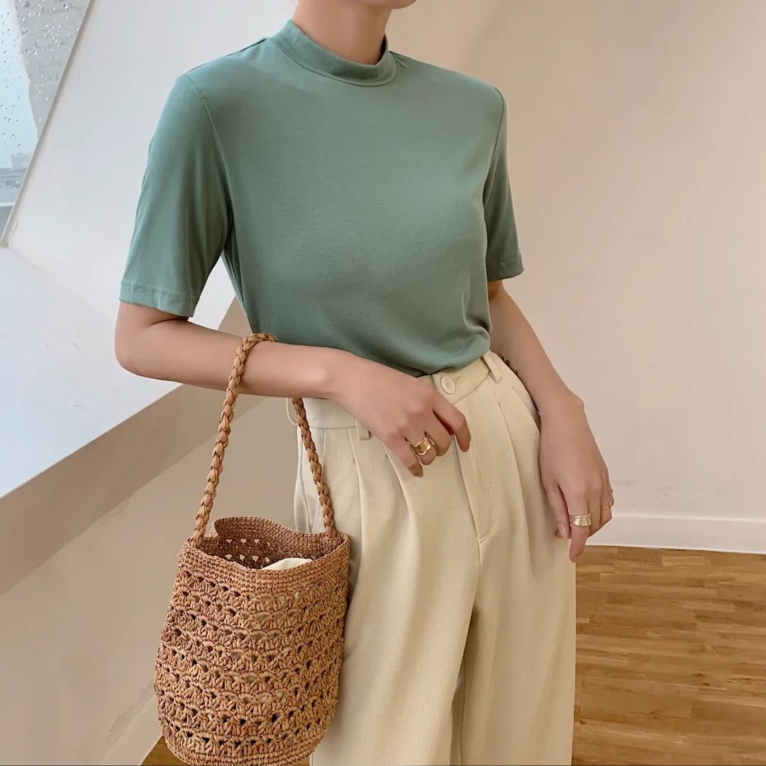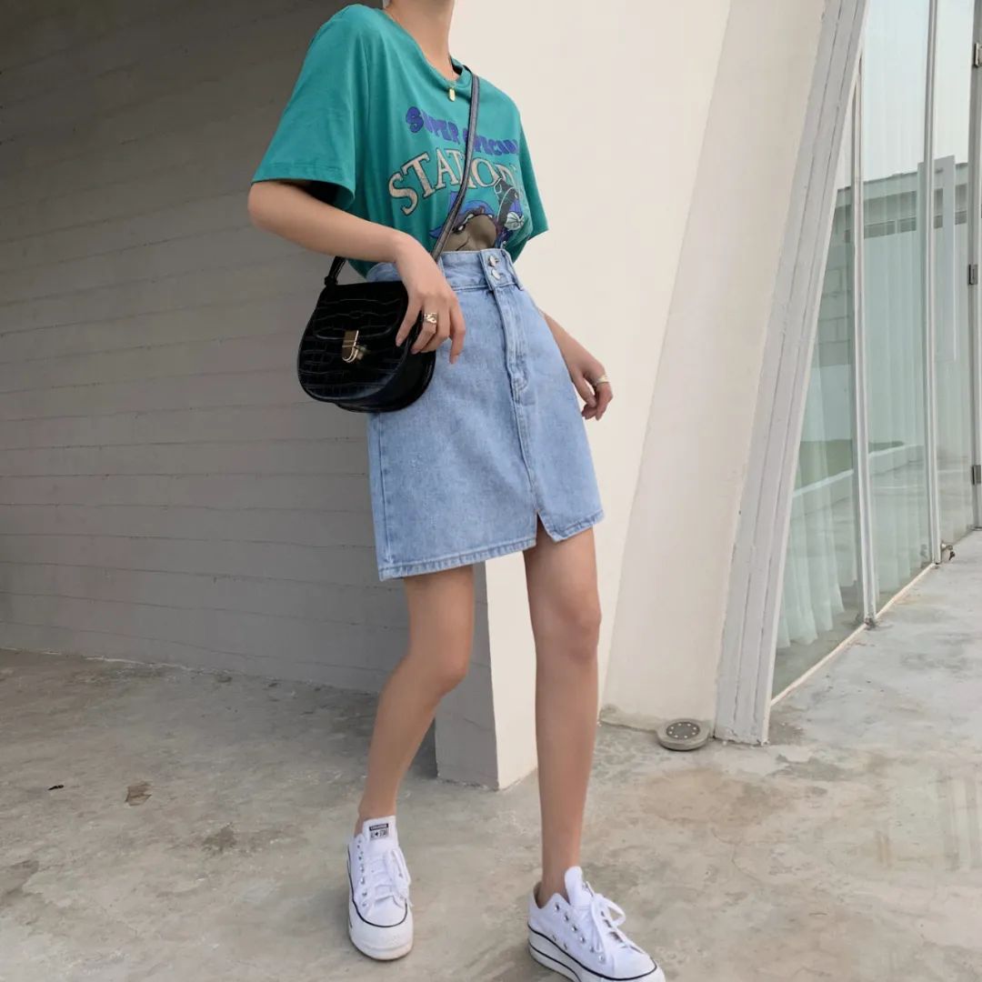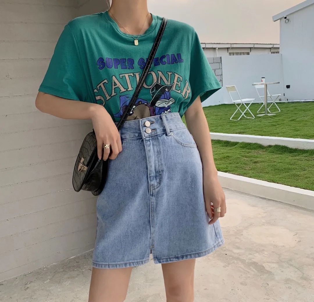 春日将尽,我们也开始追求用一些清爽简约的单品。湖水绿的卡通T恤搭配牛仔A字短裙深入人心,明朗、美好,传递着愉悦舒适的生活情绪。