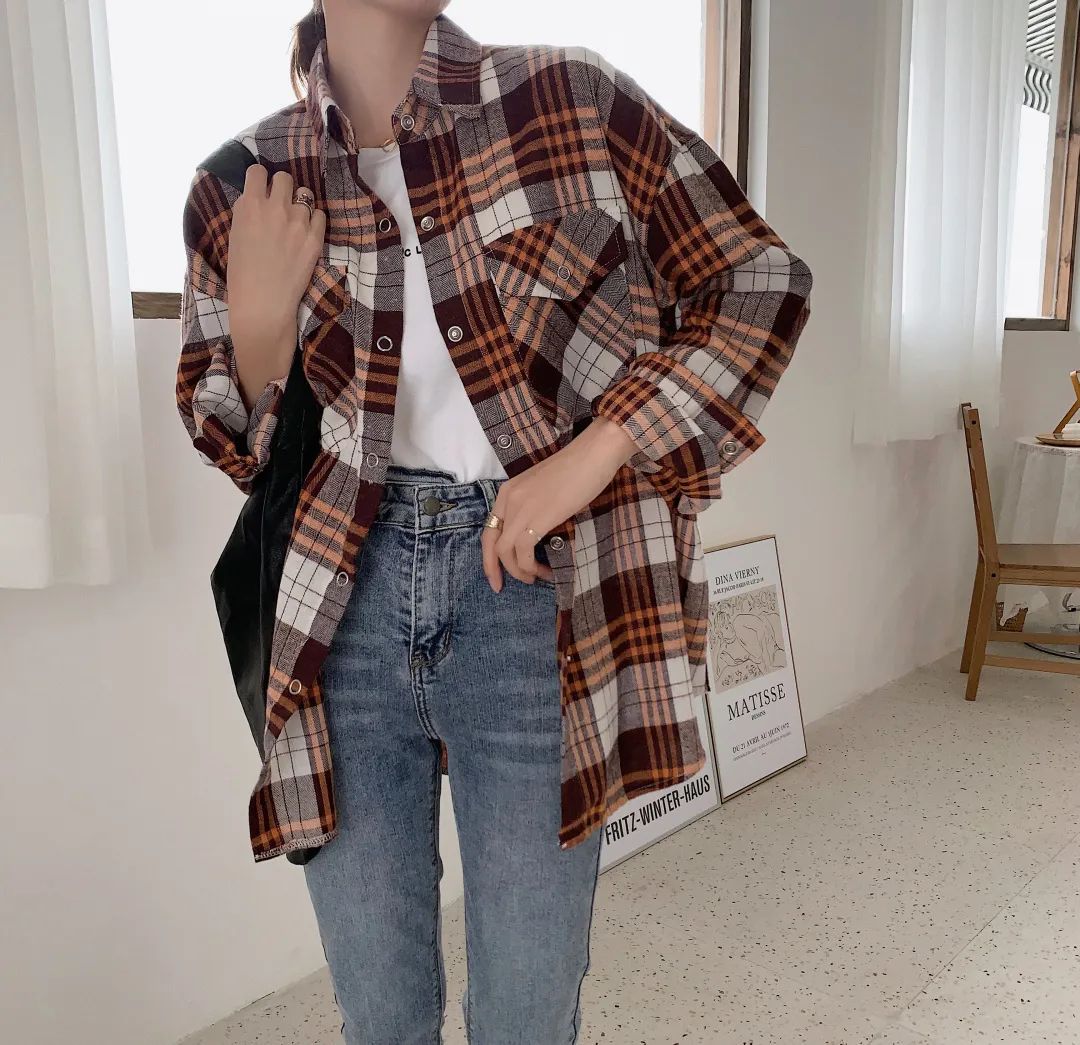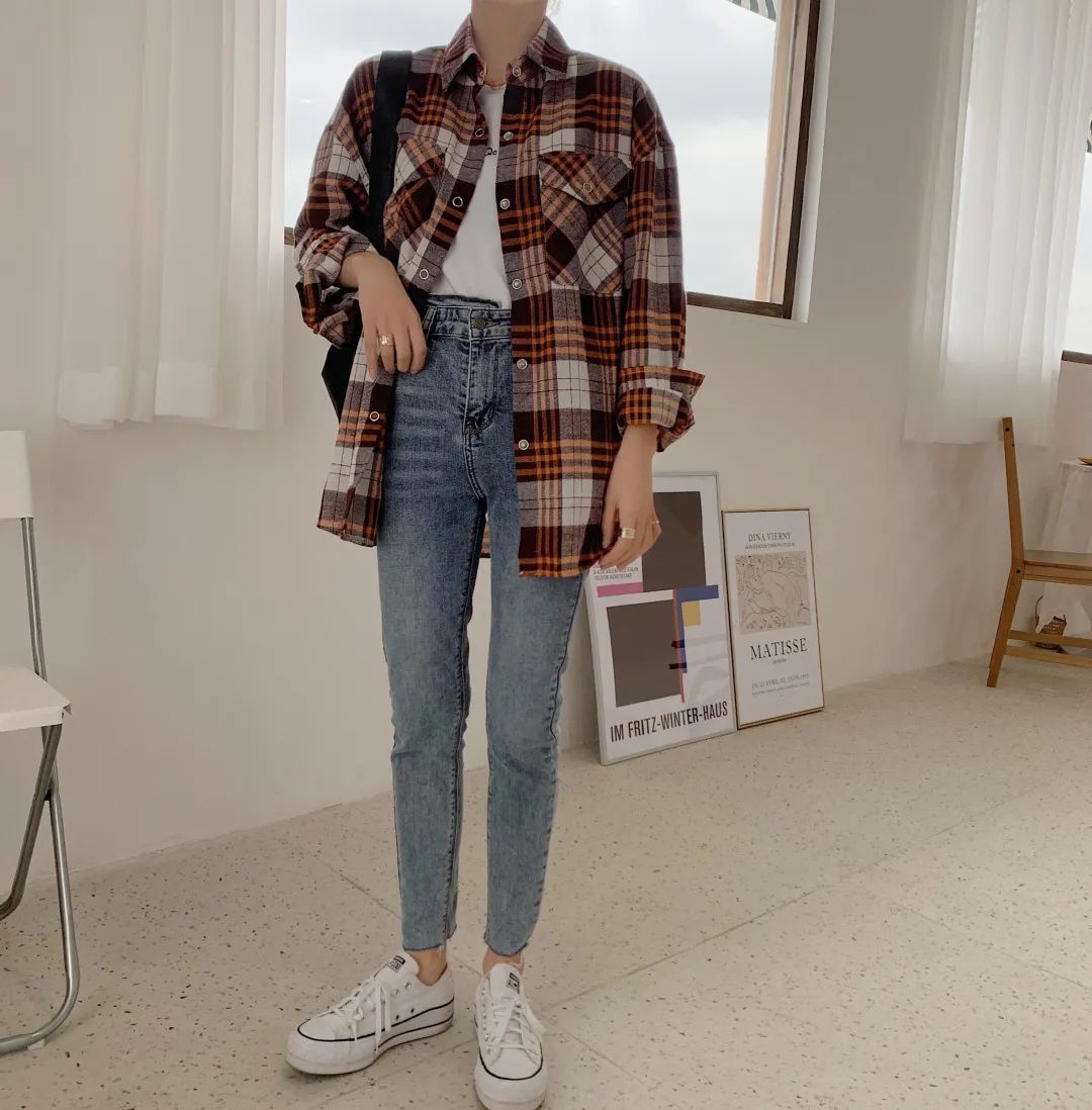 别再给格子衬衫贴“IT男标配”的标签了,明明是有点鬼马有点痞痞的男友风,一件简单的T恤+修身牛仔裤,这种休闲look也很飒。
