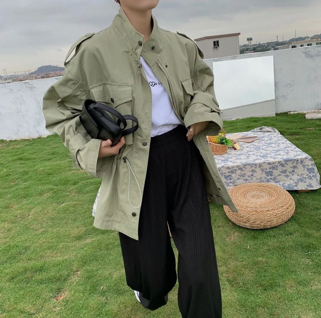 抛弃BASIC!简约也可以出彩,在细节设计上大作文章的抽绳外套,穿着随即酷势重现。后背是趣味卡通图案,百搭白T+休闲风阔腿裤,凸显率性甜美感。
