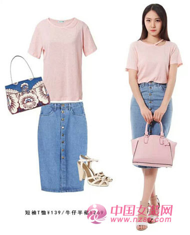 性感减龄牛仔包裙牛仔面料给人的感觉就是青春充满活力的,用它来制作的裹身裙自然也散发出年轻的味道,搭配的T恤也可以更随性些,将舒适感尽量扩大。
