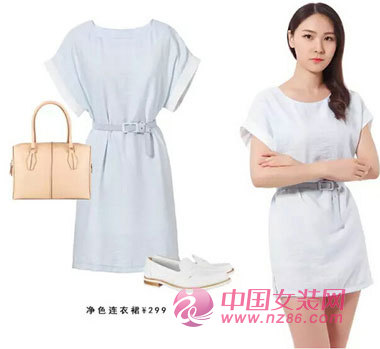 夏日清爽街头蓝淡蓝色连衣裙与白色袖口是清新的百搭配色,永远都不会出错。清新自然的颜色搭配腰带,更有一种清爽的街头风。