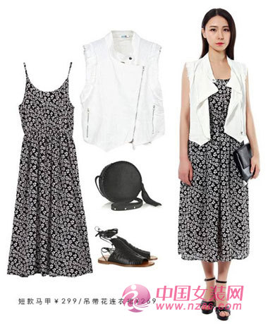 经典又时尚的***碎花长裙,混搭街头性强的马甲,无论从色系相融或是使用性能,搭配既独特时尚,又清新雅致。