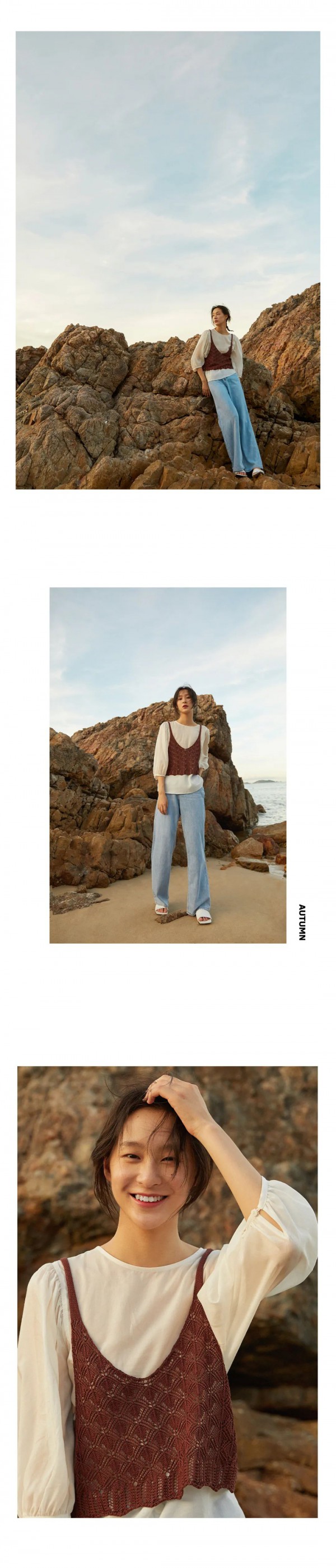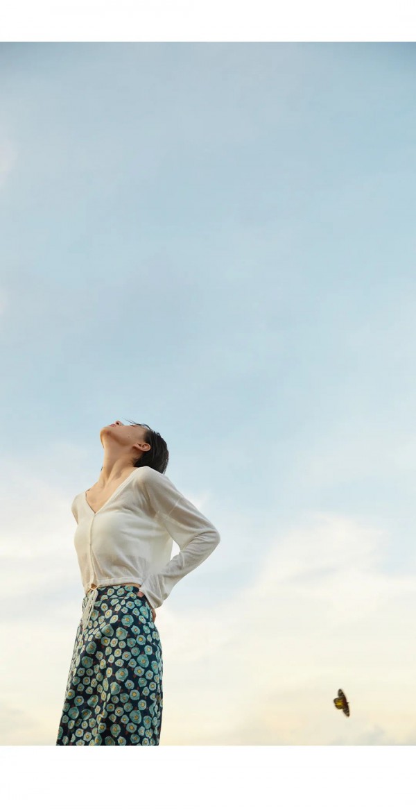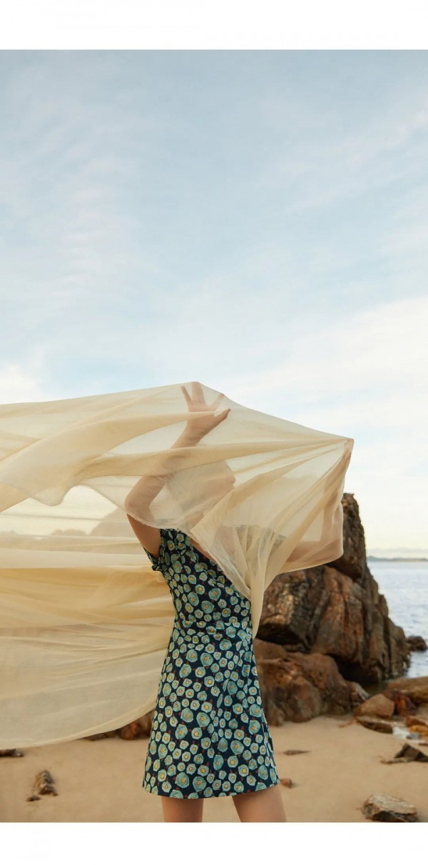 薄软的面料在海风的映衬下格外飘逸,除了风与水带来的真实,温煦的阳光也是值得令人珍惜的馈赠。