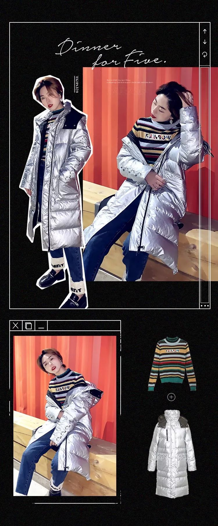 亮面银增加未来感,随意搭配各种风格,撞色内搭,秀出个性~穿出独有气质,羽绒服采用银色光泽感面料,极富现代感的同时亦有个性色彩,散落再袖间的点点星光——刺绣+铆钉装饰,采用平绣加金银绣工艺,梦幻灵动,羽绒服内填80%白鸭绒,超长款精致设计,让这个冬天永无暗淡。