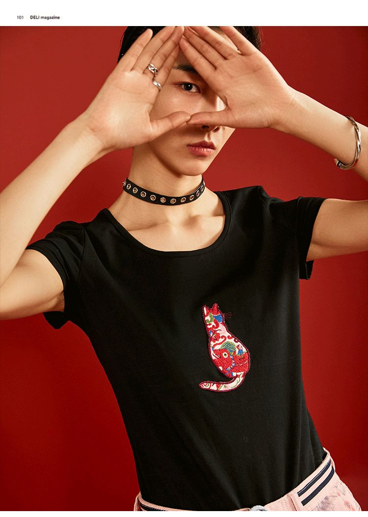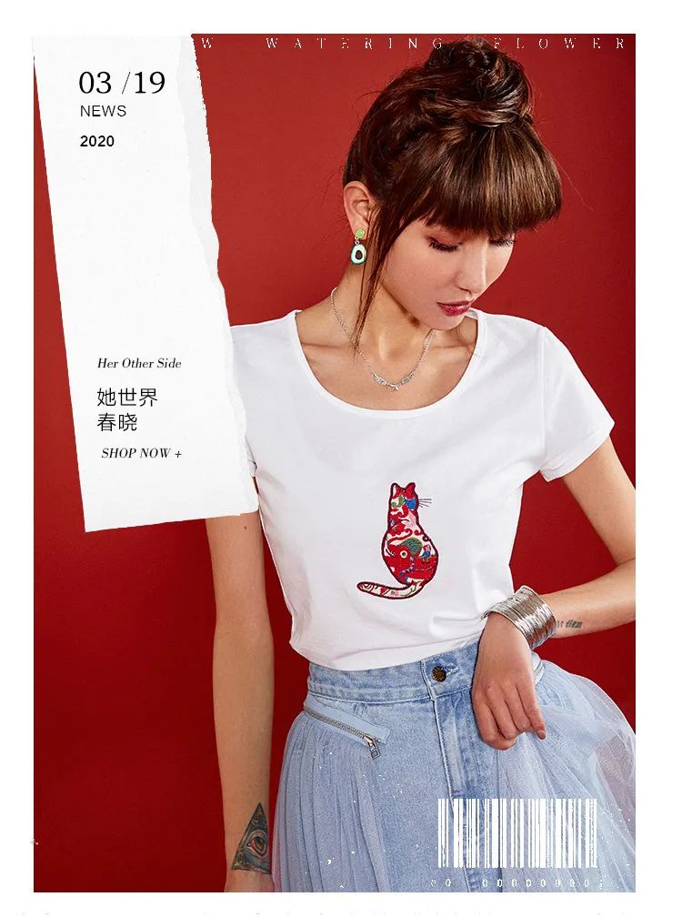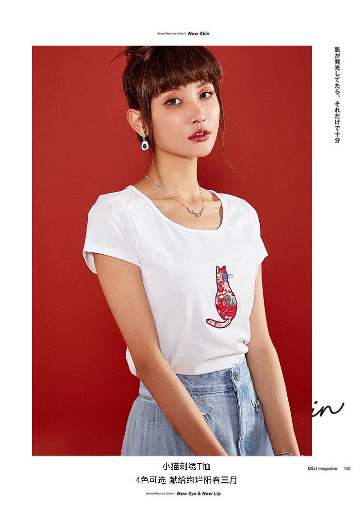 白色猫咪T恤的不同风格搭配