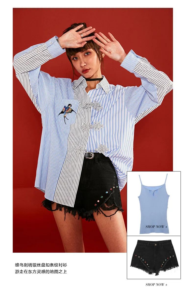 飞鸟盘扣衬衫$3gRb1SSx2xs$彩虹铆钉热裤?dbqq1S7adOr?柔软吊带衫€1eDa1S713ZD€
