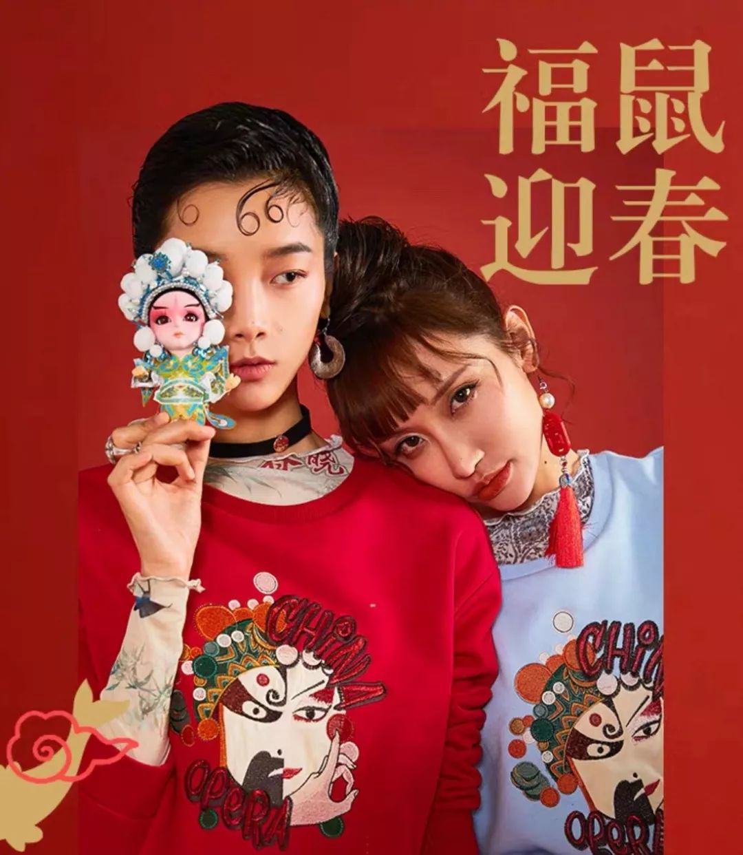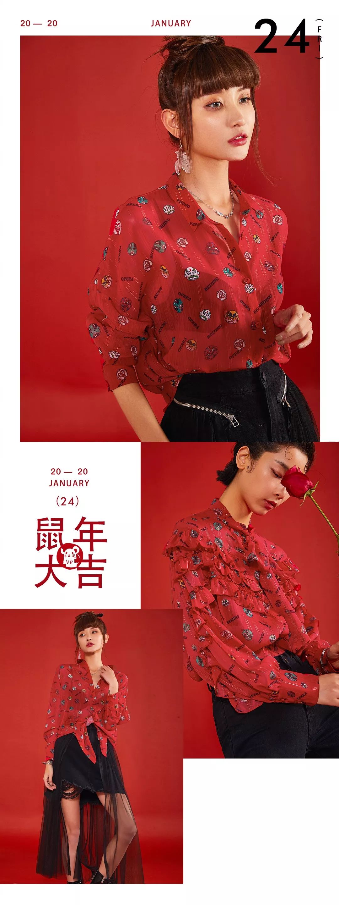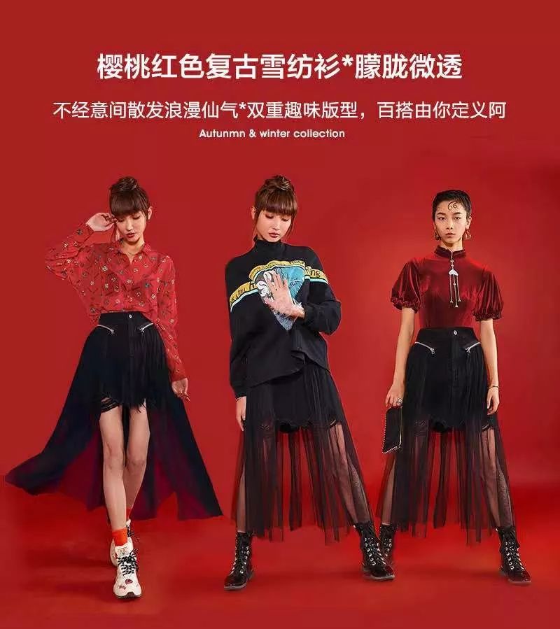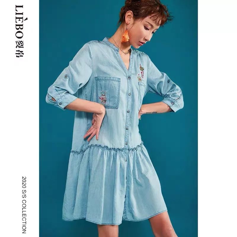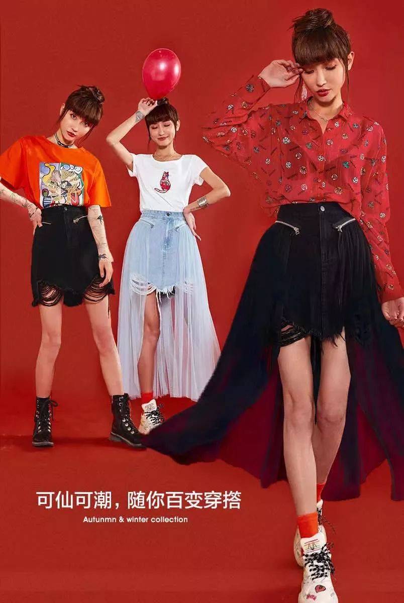 牛仔拼接纱裙&京剧脸谱印花衬衫