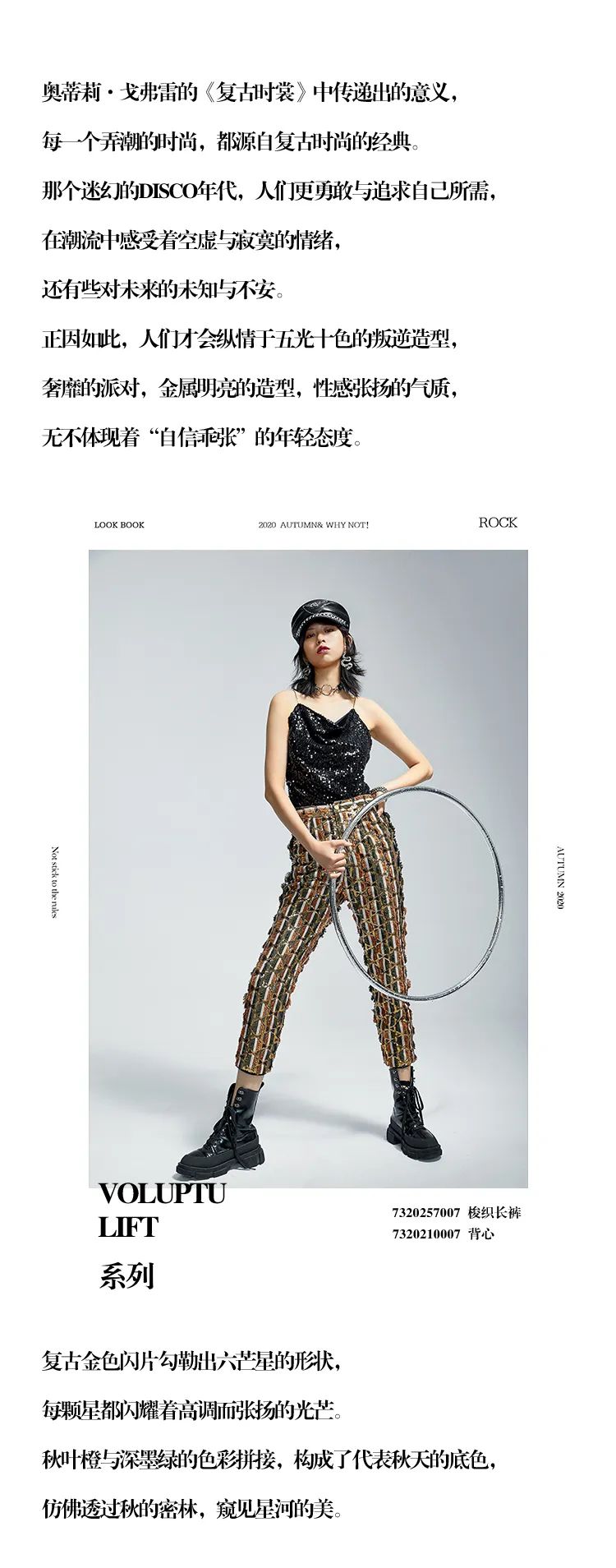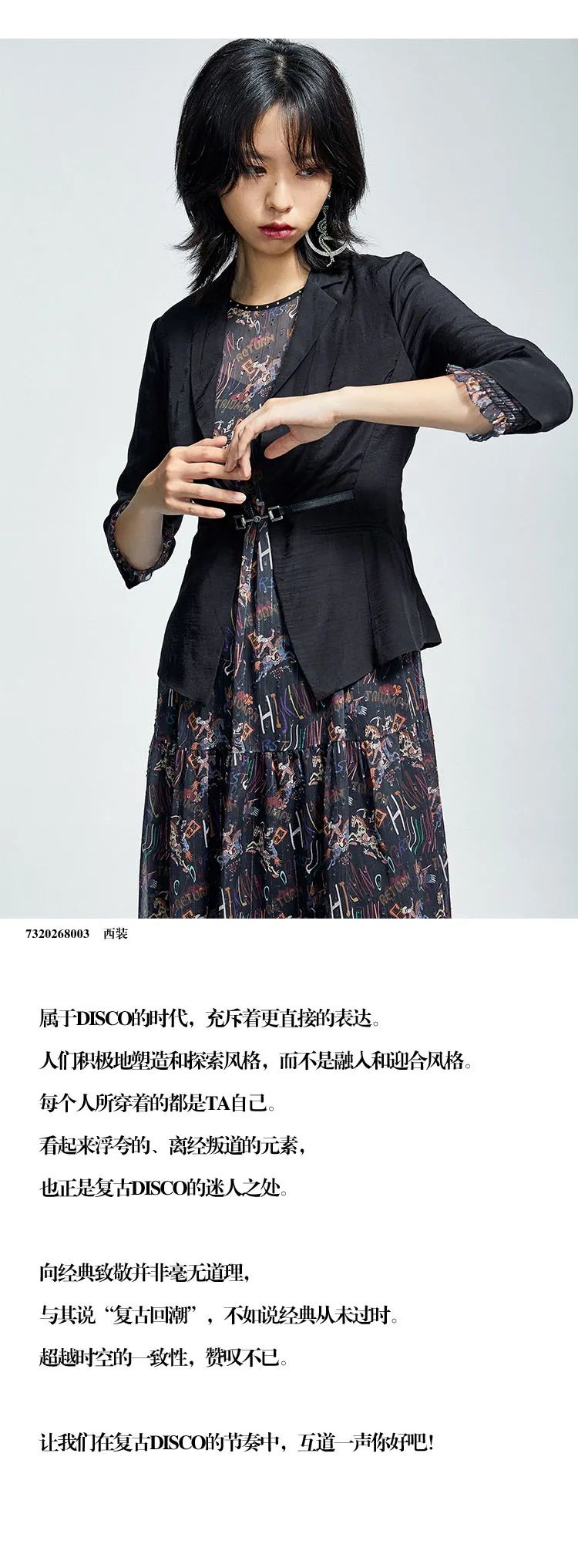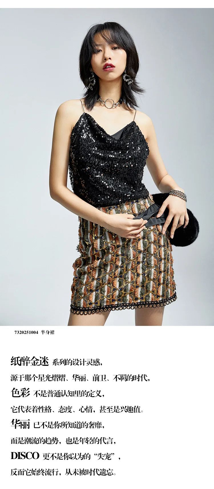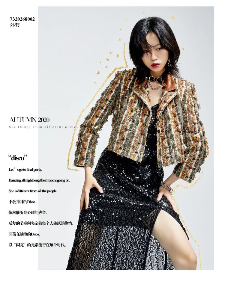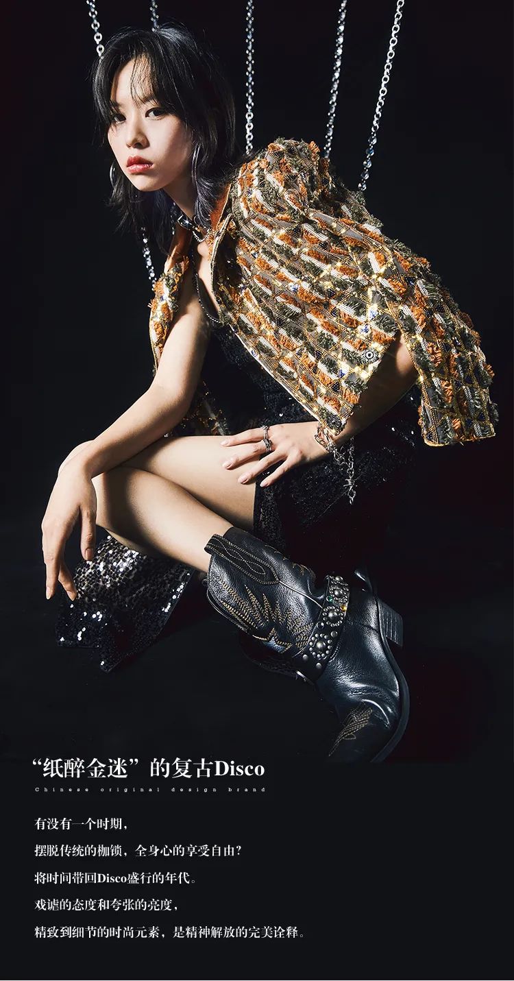 品牌自主研发的新式流苏面料,流苏弧度由手工剪裁。领口、袖口处融入色丁缎包边设计,蚕丝般触感更挺阔。手工点缀铆钉元素,更显复古风和层次感。搭配腰封或马丁靴,诠释摩登时髦感与现代Urban style的融合。