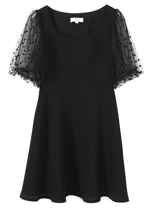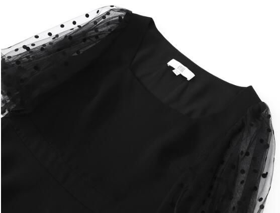 这款就是香影女装2020夏季新款网纱泡泡袖法式小黑连衣裙,该款连衣裙在设计上走的是赫本风,版型友好,设计方领,体现女人味;袖子波点网纱的巧思,穿着上修饰了手臂的线条;收腰配合A字摆,让穿着女性在行走间,拉长你的身材,体现身材的韵美。