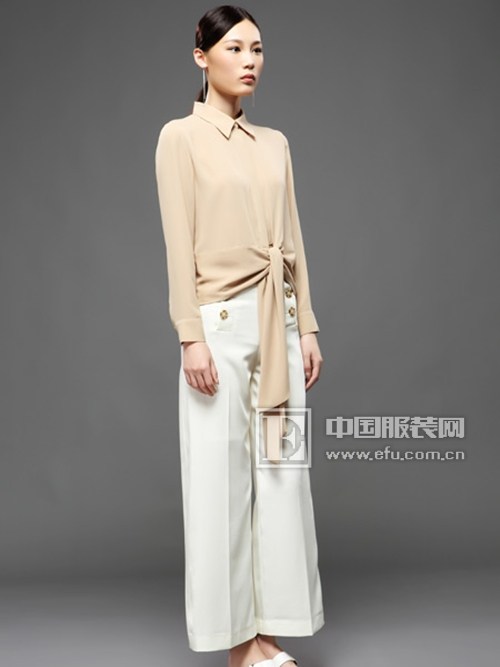 雪纺长袖与阔腿裤的碰撞时尚又个性,这款上衣侧边系带是一大亮点,还能不经意间显露穿着者的腰线,显瘦效果非常好。白色阔腿裤的简洁与优雅你值得拥有!