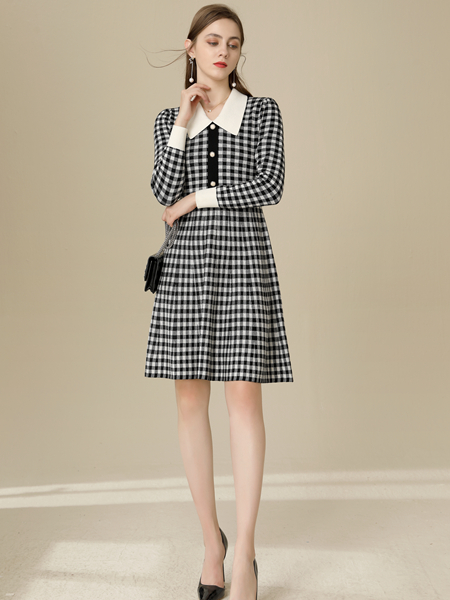 这款格纹翻领连衣裙是很好看的哦,很小清新也非常时髦,白色翻领的设计将自己锁骨修饰出来看起来气质又甜美,版型包容性是很强的哦,不管是现在单穿还是冬季作为内搭都非常不错,修身的版型将自己的好身材穿出出来,秋季选择这样的穿搭是很好看的哦。