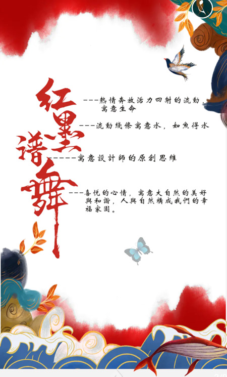 本次发布会以“红墨谱舞”为主题,寓意设计师的原创思维,寓意热情奔放、活力四射的流动的生命,本次新品,设计师运用国潮新元素、喜剧元素及艺术混搭的手法,展现新一季的时尚潮流,谷度也势必为时尚界带来新一轮的时尚风暴。
