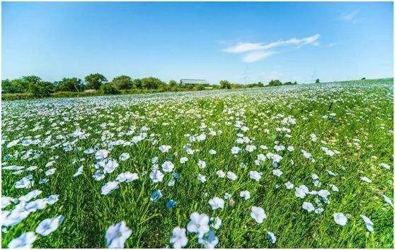 亚麻为一年生草本植物,需生长在相对寒冷的地域,又名蓝亚麻,花期两周。