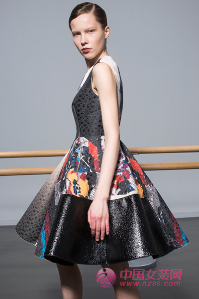 收腰大摆修身裙选用棉麻面料剪裁而成,光泽提花料的精妙肌理,皮质拼接光泽靓丽,抽象印花色彩浓郁,金银丝点缀使面料表面的立体感更强。