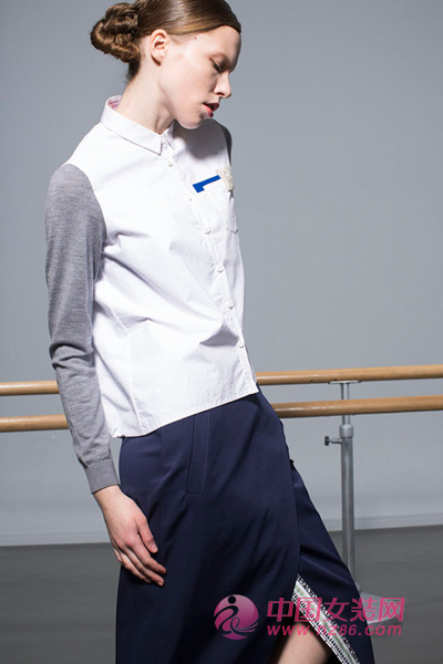 宽松版型的拼接衬衫,极富层次与设计感,下搭不对称剪裁的半裙,裙身交叠开衩有很好的视觉延伸感,拉长双腿,整个人立刻有了身高170+的气场。