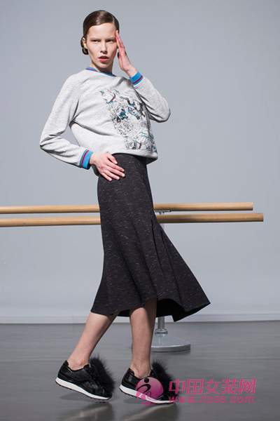 针织复合面料卫衣,比普通卫衣更多几分精致唯美,散发着浓郁艺术气息,下搭唯美流畅的鱼尾半身裙,臀腿部线条都被很好的修饰,整身搭配运动不乏高级感。