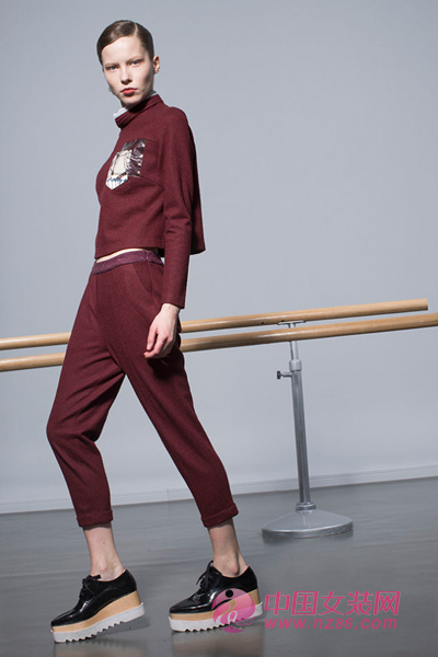 短款高领上衣,剪裁简洁有型,小立领、高腰线都是今年热门流行,长裤面料为***进口澳毛面料,垂坠感***,细腻柔软,整体感觉唯美有范。