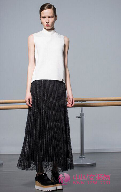 拼接小立领上衣,尽显现代个性时尚,下搭浪漫百褶裙,穿出流动的风景。