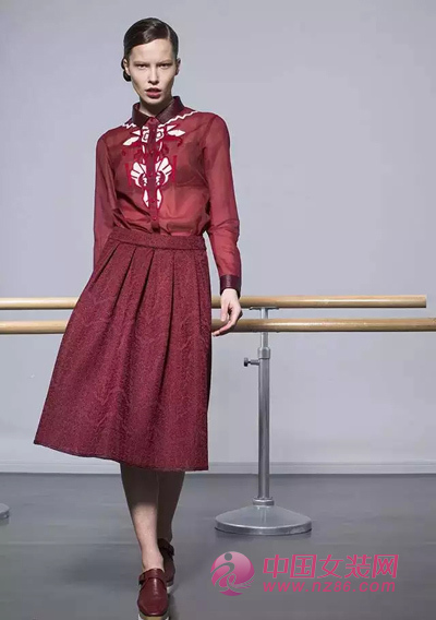 红纱薄透的经典衬衫,不同材质拼接圆融互通,胸前个性贴布绣,添一种文艺与复古气息。