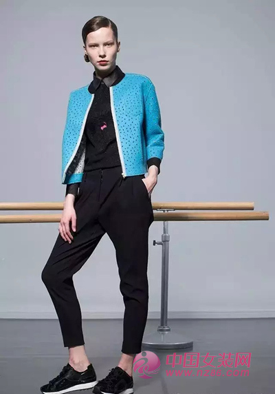 宽松版型的打孔毛呢复合外套,面料挺括有型,色彩纯正,于清雅灰蓝中演绎唯美,面料透气,极具高级感。