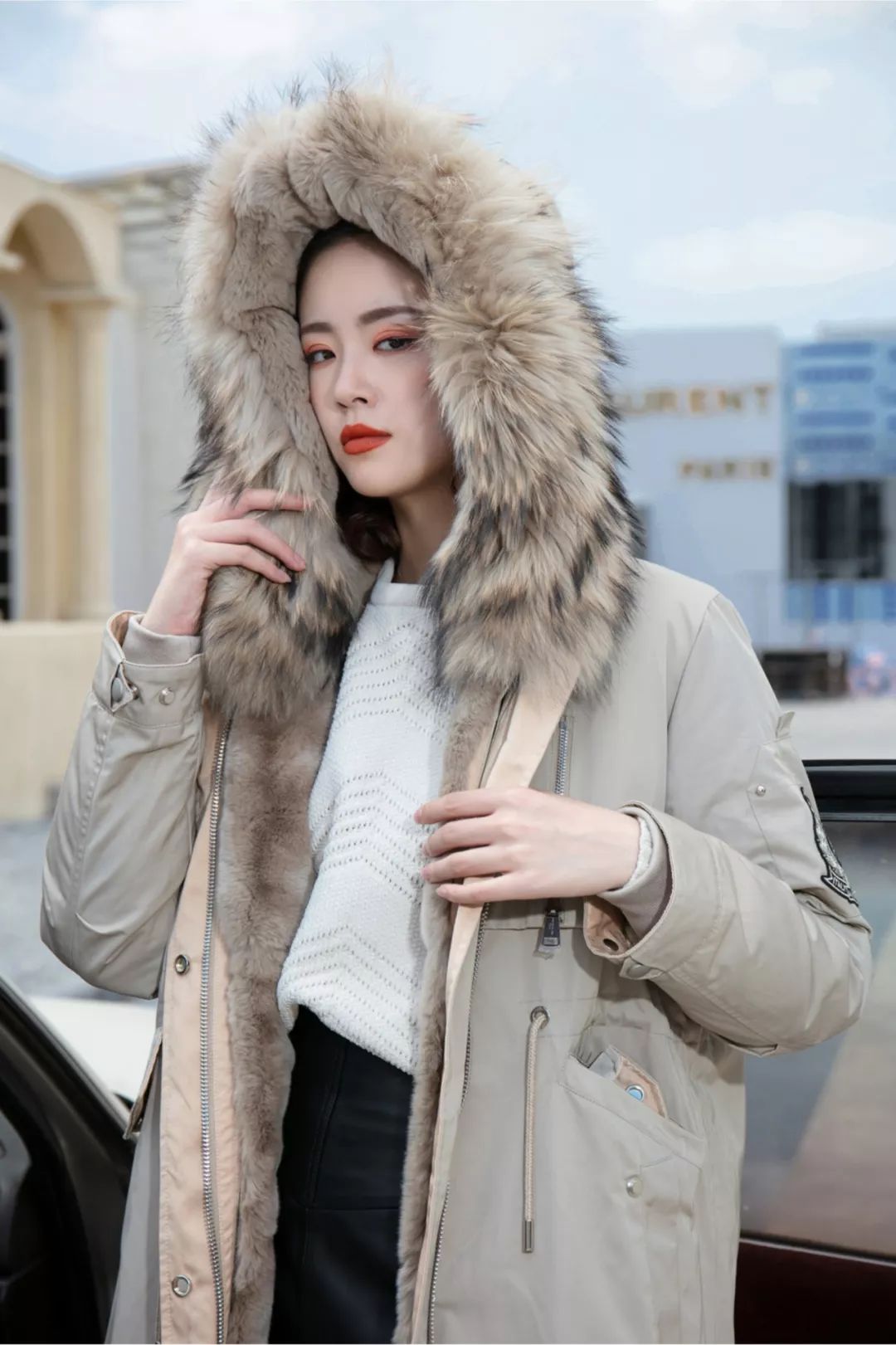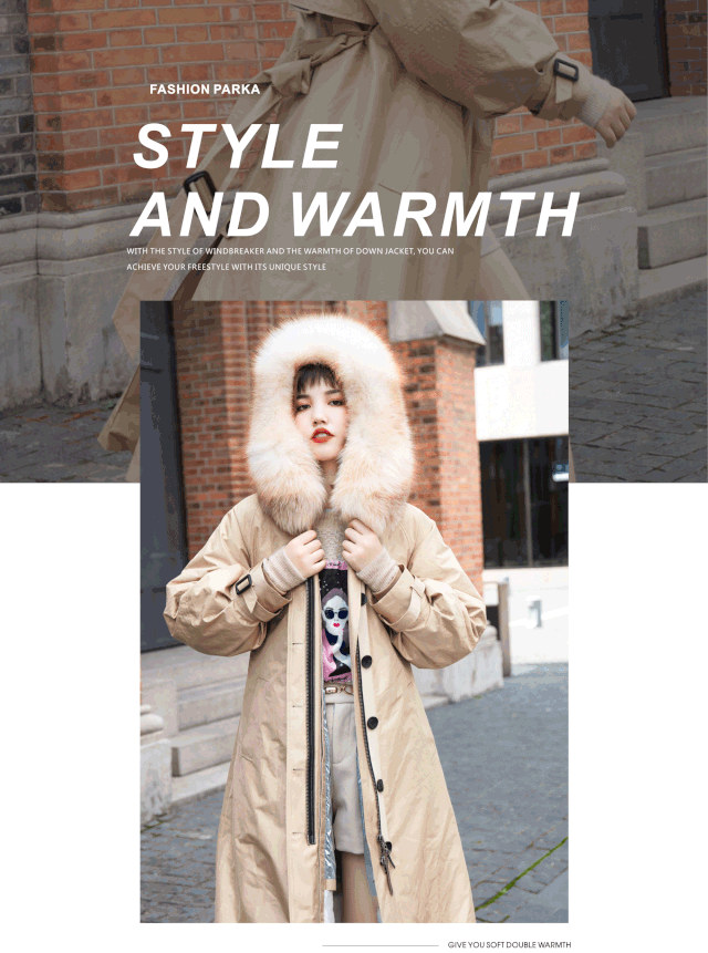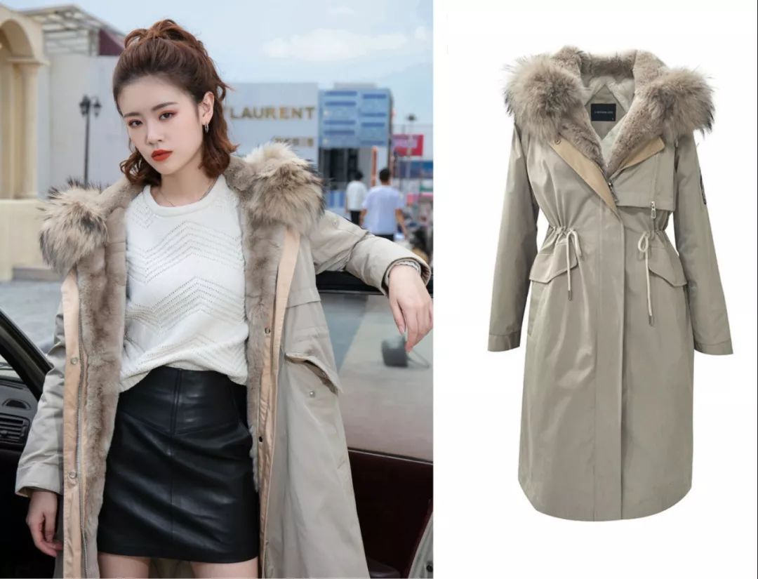 派克服主要是由外壳、皮草内胆、皮草毛领 等组成,内胆与毛领基本都能拆卸,可以达到一衣多穿的效果