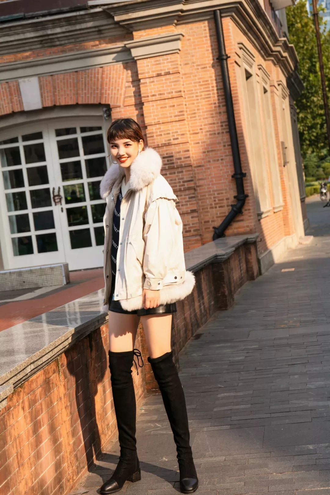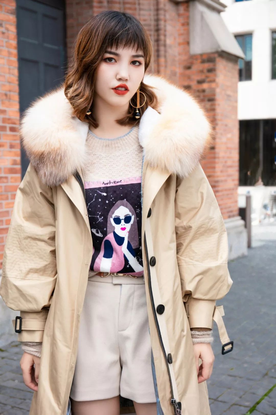 毛衣+短裤的搭配显高又气质/率性又自由,整体造型兼顾了冬日的温暖与时髦,增添一份街头摩登趣味