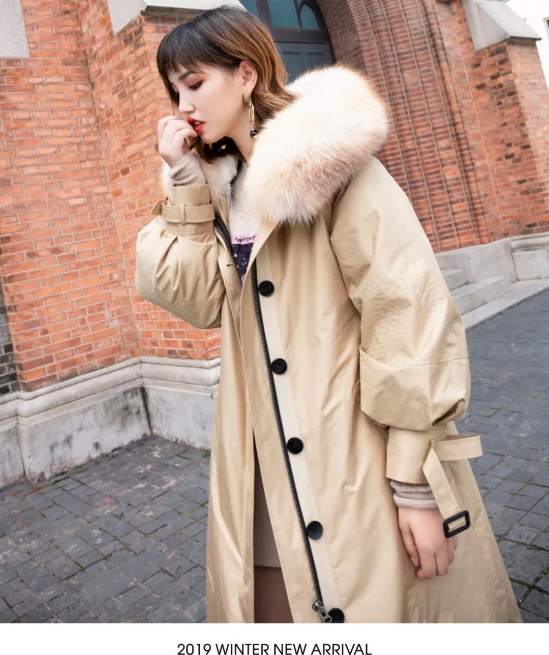 整个人蜷缩在大衣里,光看着就觉得充满暖意,还特别显脸小~