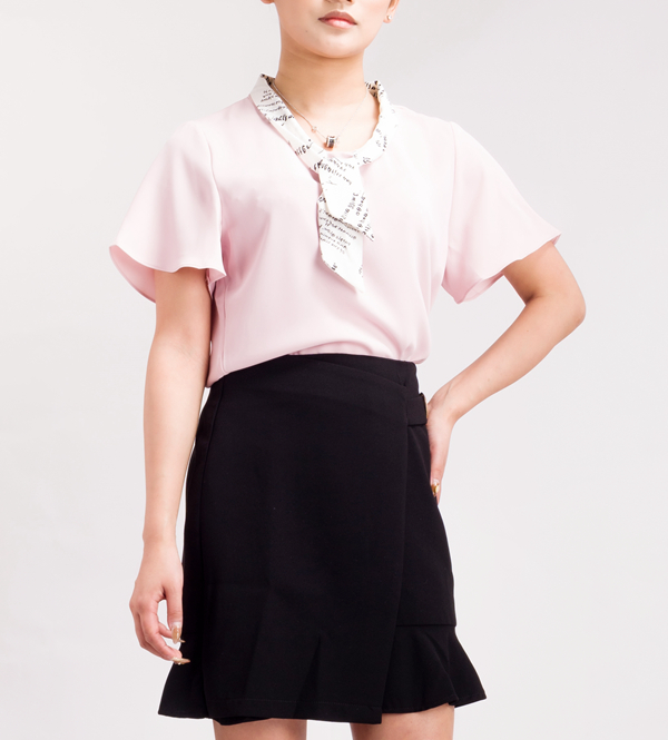 咔魅兰这款粉色短袖雪纺衫,优雅的奶油嫰粉,软糯的温柔柔化少女心,让人很快就心甘情愿醉倒在这浪漫里。撞色小领结的设计,复古又洋气。满满的小众设计感,在人群中菲常亮眼,气质出众。夏季选择这样—款百搭的短袖衬衫,兼具优雅知性和可爱少女,通勤和日常都很合适,下身搭配裙装裤装都是很CHIC的。