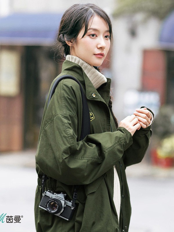 秋季一款外套保暖御寒的同时又能轻松穿出气质感,这款外套颜色上采用的是高级显白的军绿色,简单的外套立领的款式简单干练,宽松的版型轻松穿出时尚感。利落精细的剪裁以及完美的垂顺度更显这款外套的高级质感。搭配一款简单的高领毛衣多了几分文艺风,这样一套气质的搭配不管是上班还是逛街都会非常合适哦!