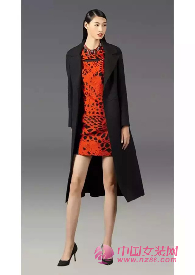 撞色连衣裙外罩一件超长款黑色大衣,让你不再担心怎样驾驭一身橘红,反而多了点酷酷的女人味。敞怀穿着会让你看起来更加高挑显瘦,也不会埋没了连衣裙的色彩。黑色尖头高跟鞋,露出脚背使腿部更修长。如果你对小腿线条足够自信也可尝试长筒靴。