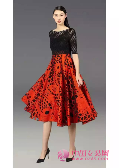 将橘红色视觉下移,这样搭配完全没有顾虑,放心大胆地让亮色赚足回头率吧!超大摆连衣裙,别有心机设计了高腰线,看起来苗条不少。上身镂空元素与裙摆剪纸镂空图案呼应,精致的钉珠装饰领口。一字领刚好可以露出锁骨,性感、好身材只要选对衣服就全有了。