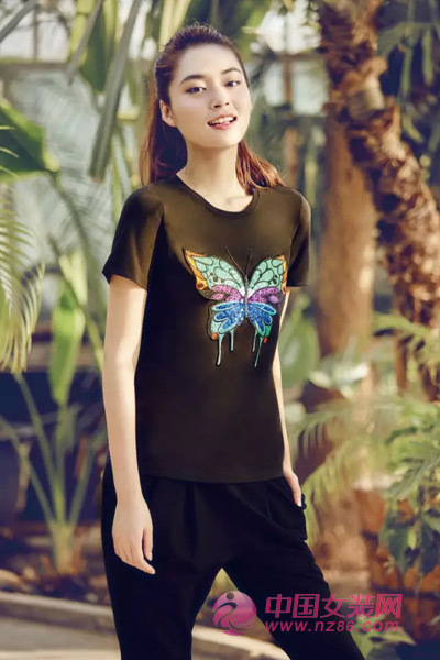 任何的时尚类书籍都会强调基础款单品的重要性,其中“黑色T”是必然会上榜的高频词汇。一只浮凸且色彩明亮的蝴蝶,也会让基础款变得不简单。