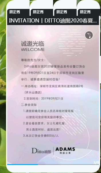INVITATION I DITTO迪图2020春夏新品发布会具体日程安排如下: