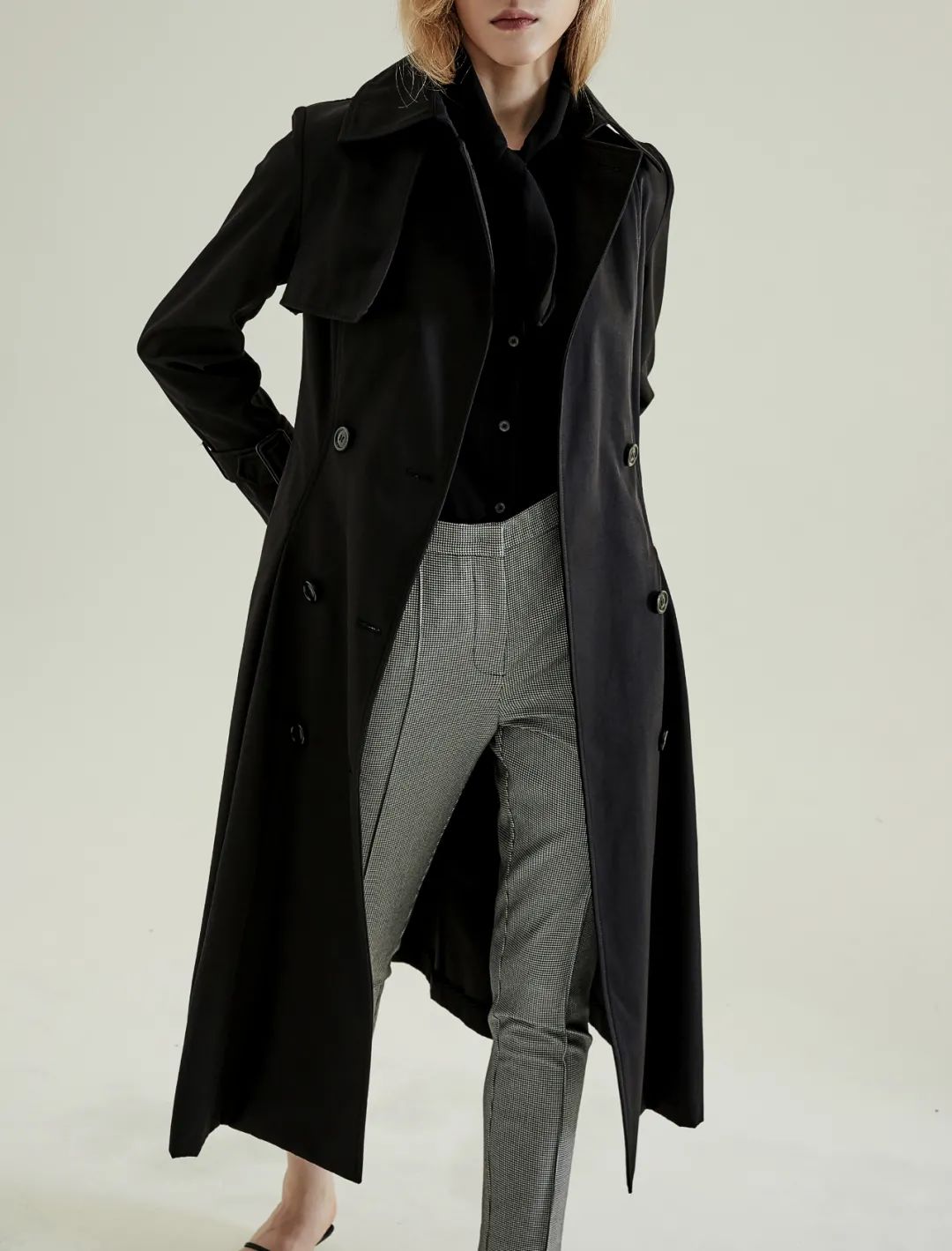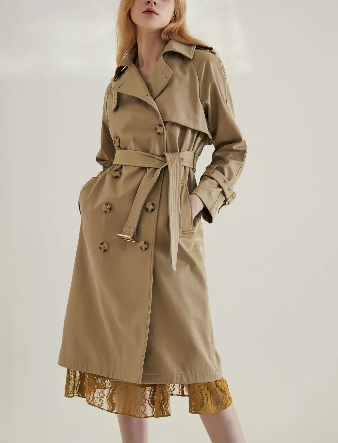 风衣对军事元素的保留,使它看上去有一种“久经世事”的历练。而在女性身上,更体现出一种岁月积淀的智慧、帅气和豁达。