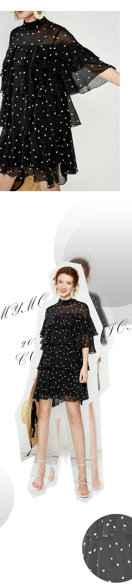 小高领修饰颈部,将高贵的名媛气质散发出来。蝙蝠袖+双层荷叶边,举手投足透着娇俏浪漫。胸前荷叶边从视觉上营造立体饱满的身材。层层叠进的荷叶裙摆随步伐律动,曼妙灵动。裙长至膝盖上,风吹来裙角摇曳,暗自撩人。黑底白心这个配色,微胖或不那么白皙的人穿上,既不会显黄也很能藏肉。建议入手,360度无死角的美。每一帧都美的灵动。