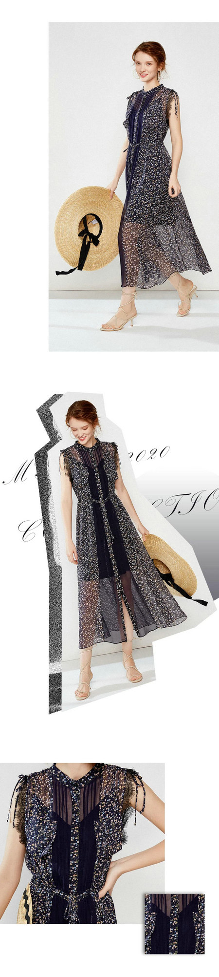 细细密密的碎花如漫天繁星般,铺在轻盈的面料上。全件以绑带、褶皱、蕾丝、拼接为主要元素。造型轻柔浪漫,把女性的优雅知性,烘托的淋漓尽致。飘逸长裙款,不挑人,也能防晒。和风衣、外套、开衫都能很好兼容。款式新颖小众,不会撞衫的美裙。