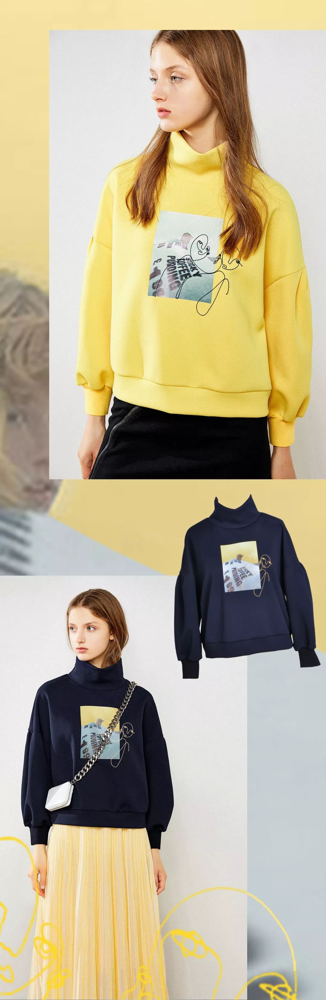 把目光转向新奇又抢眼的图案上,让造型充满了酷感。搭配极尽温柔的半裙。裙身的线条灵动飘逸,卫衣又实用简单中性风,整体帅气又不失甜美的感觉!上身瞬间变成活泼girl的灵气~完美兼顾温柔与潮流。