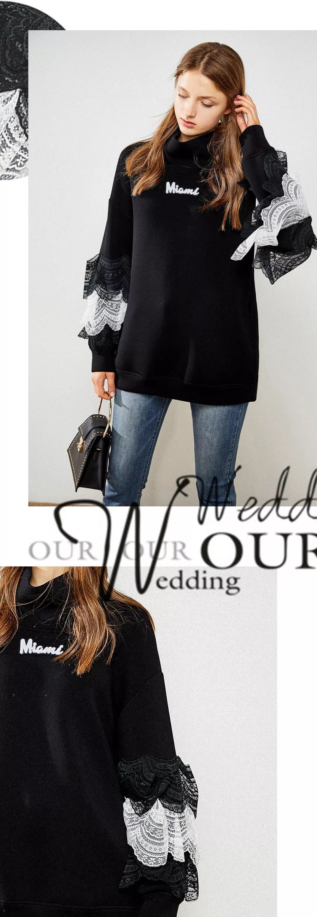 以及袖口层叠蕾丝荷叶边,