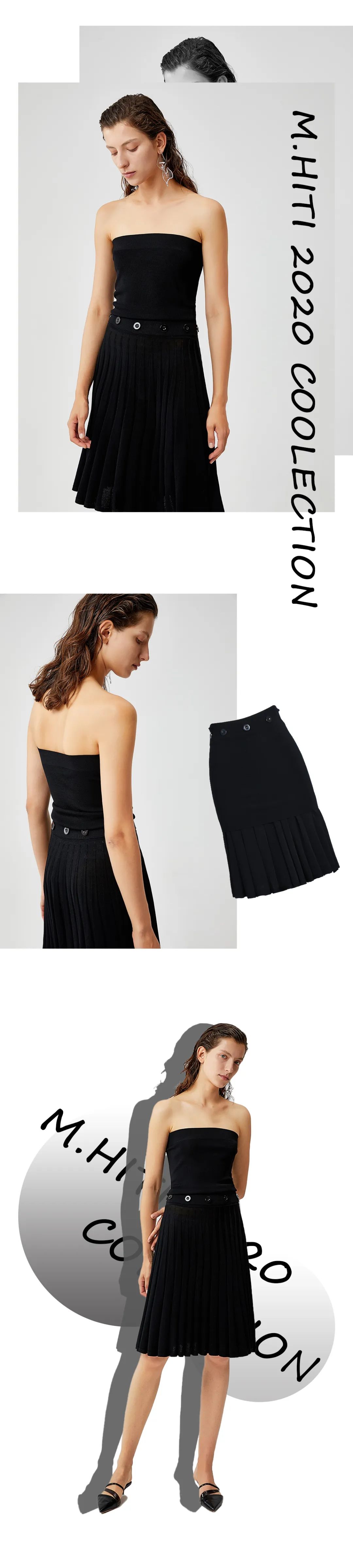 A字百褶裙上窄下宽的设计,可以完美地遮住臀部问题,还能显得腿很细。对于屁股大、腿粗、有小肚子的人相当友好!富有层次的百褶元素,穿上身给人一种灵动的感觉。腰部点缀纽扣,将甜美和轻熟很好地结合在了一起。