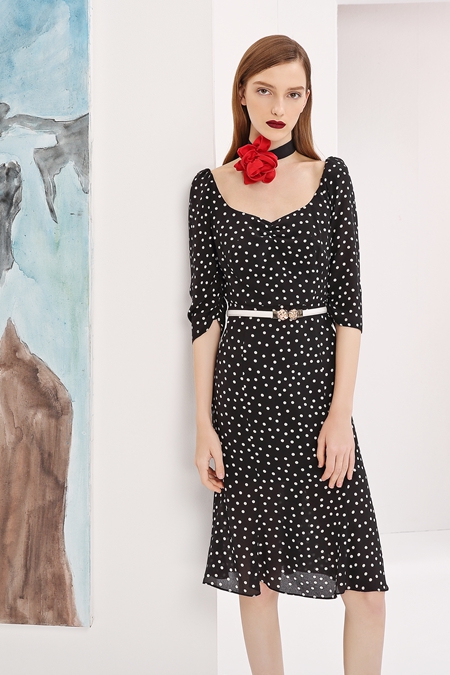 波点雪纺面料设计的连衣裙复古而优雅,这样的款式更能降温显瘦。腰部的腰带设计轻松拉长了身形,展现出女性玲珑的曲线,想要打破夏日沉闷,一件这样的雪纺连衣裙就让你气质爆表,魅力加分!