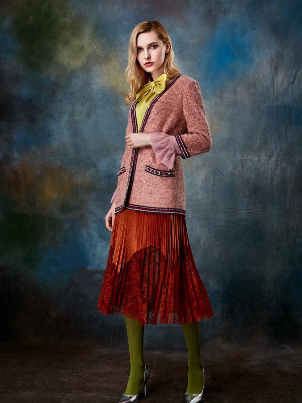 除了裙装,TITI还有粉色的外套哦,这件外套款式简单大气,廓形版型穿起来舒适又时尚。双排扣也有显瘦的效果,穿起来非常的淑女甜美哦。
