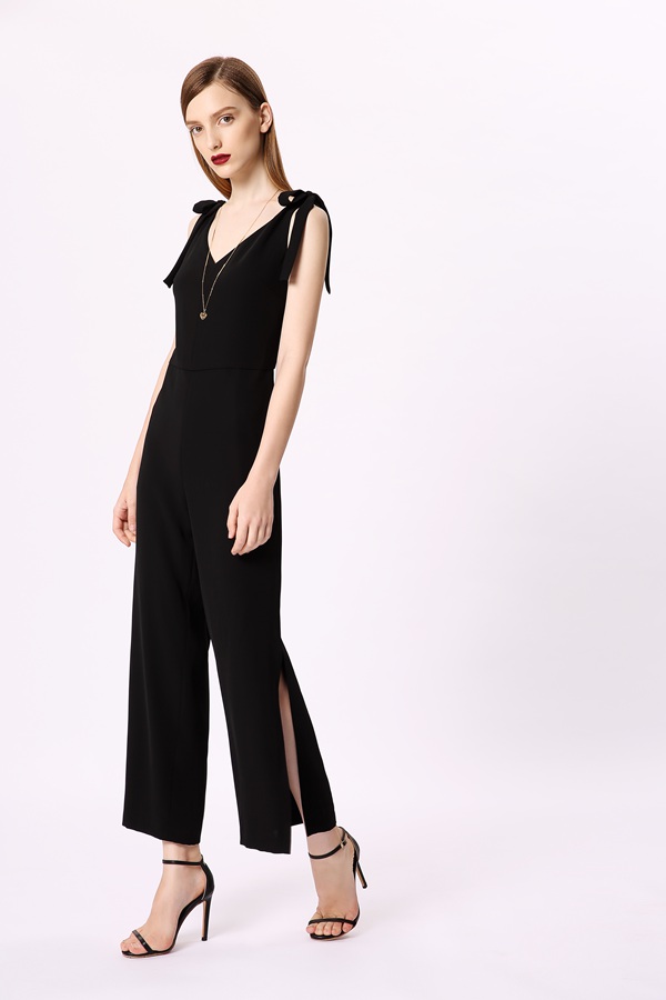 对于夏季来讲,吊带连体裤是每个爱美的女孩衣柜里必不可少的法宝,他可以应对不同场合,也可以应对不同女孩儿的口味,有着不一样的风格,让每个穿他的女孩儿,都散发着个人的魅力,纯黑色的吊带连体裤,干练的感觉马上呈现。开叉的裤腿给你不一样的时尚,精彩不停歇哦。