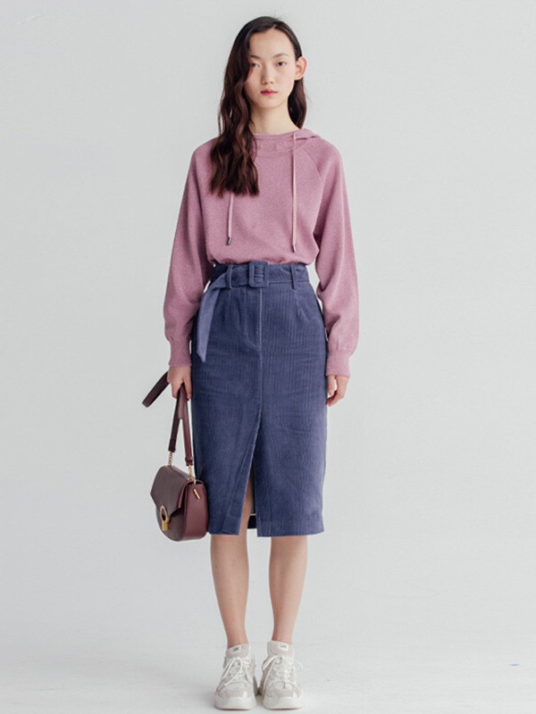 黑白色虽然百搭,但是它没有太多个性,和新潮的颜色搭配效果也只有一般功效,如果是两个对比色搭配就非常精彩了。曼娅奴女装这件粉色的针织连帽款上衣,颜色非常的温柔耐看,加上优质的面料穿着起来非常的减龄耐看,搭配上一条熏衣草色的灯芯绒高腰包臀裙撞色,带来满满的青春活力感,特别的耐看。脚踩一双白色的运动鞋,简单又有味道。