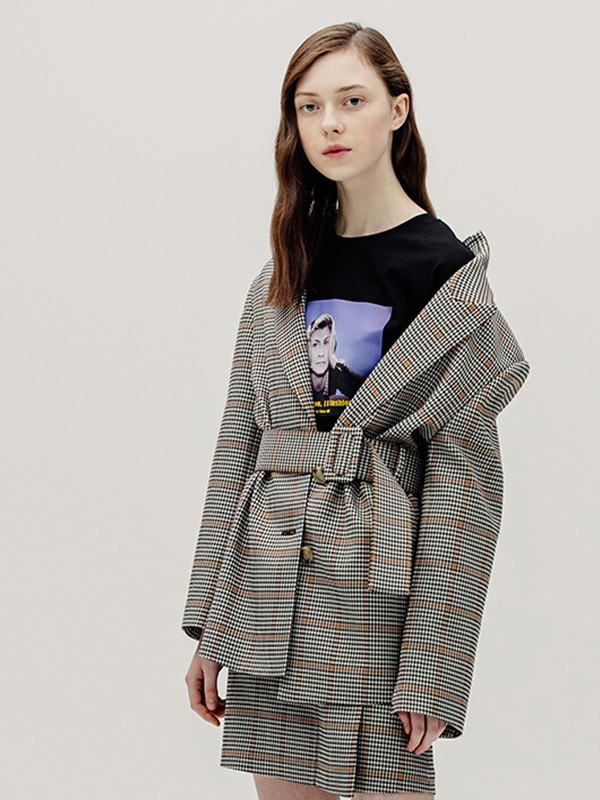 英伦风配上休闲风,带来满满的潮流气息。这件灰色的英伦格子套装,在焦糖色与灰色的撞色下,极大提升了这件西装套装的视觉层次感。而且中长款的版型,包容性非常的完美。内搭一件黑色的印花款T恤撞色,碰撞出的火花可以吸引诸多人的目光。脚踩一双黑色的小短靴,即可帅气出街。