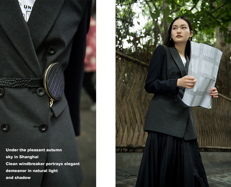 在上海秋风宜人的天空下,挺括风衣于自然光影中描摹翩翩风度。强调曼妙身型的Skinny腰带,将曲线美与舒展状态展露无遗,内搭蕾丝连衣裙的柔美气质,让时髦雅致的调性成为日常焦点。